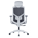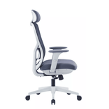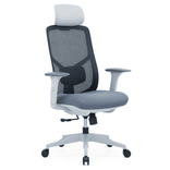Silla Ejecutiva con espaldar en Malla, reposacabezas de PU ajustable, Marco plástico gris + marco de fibra de vidrio y soporte lumbar ajustable. Apoyabrazos ajustable con cubierta de PU, asiento en Espuma moldeada de buena calidad (PU), mecanismo de inclinación sincronizado de 3 cerraduras base de nailon de 340 mm y rueda de nailon de 60 mm.